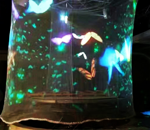 幻影成像系統(tǒng)也稱虛擬成像是基于“實(shí)景造型”和“幻影”的光學(xué)成像結(jié)合,將所拍攝的影像(人、物)投射到布景箱中的主體模型景觀中,演示故事的發(fā)展過程。繪聲繪色,虛幻莫測(cè) ……